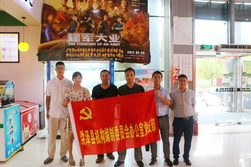 今年恰逢八一南昌起义暨建军90周年,为庆祝南昌起义暨建军90周年,牢记党领导武装起义的革命历史,近日,洪泽区编办组织全办人员,走进电影院,观看《建军大业》影片。